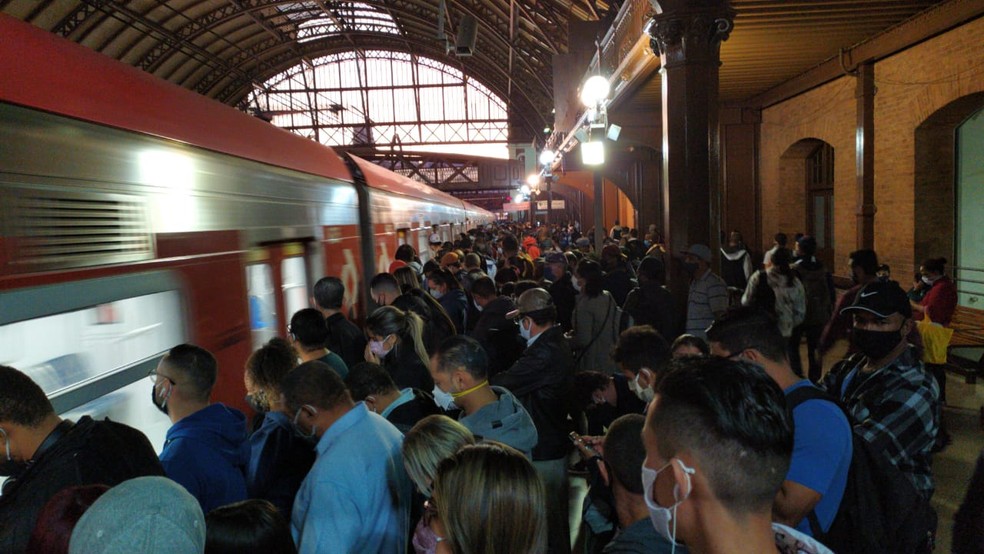 Movimento na plataforma da CPTM na estação Luz, região central de São Paulo, nesta quarta-feira (27) em meio à pandemia do novo coronavírus — Foto: Anderson Braga/G1