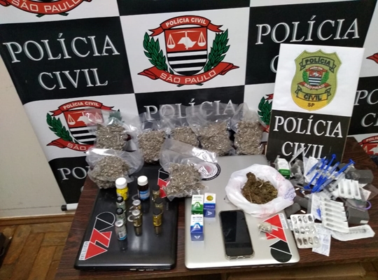 Os policiais da DISE de Votuporanga ao realizarem o cumprimento dos mandados de prisão temporária, encontraram na residência do homem de 29 anos, no bairro São Cosme, 07 pacotes embalados a vácuo contendo maconha, uma sacola plástica com maconha solta e uma porção também de maconha embalada e pronta para a venda, pesando um total aproximado de 1,5kg da droga. Foram apreendidos também vários frascos contendo anabolizantes, celular, notebooks, seringas e agulhas. Ele foi autuado em flagrante pelo crime de tráfico de drogas.