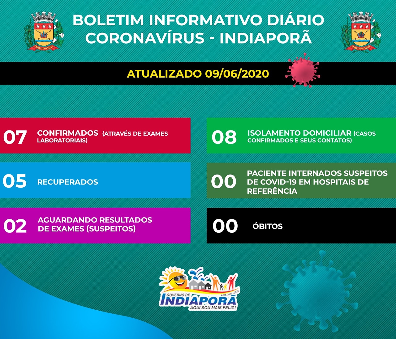 Até a tarde desta terça-feira, 9, Indiaporã registrou sete casos confirmados de coronavírus. Destes, cinco pacientes estão recuperados. Duas pessoas estão aguardando a chegada de exames.