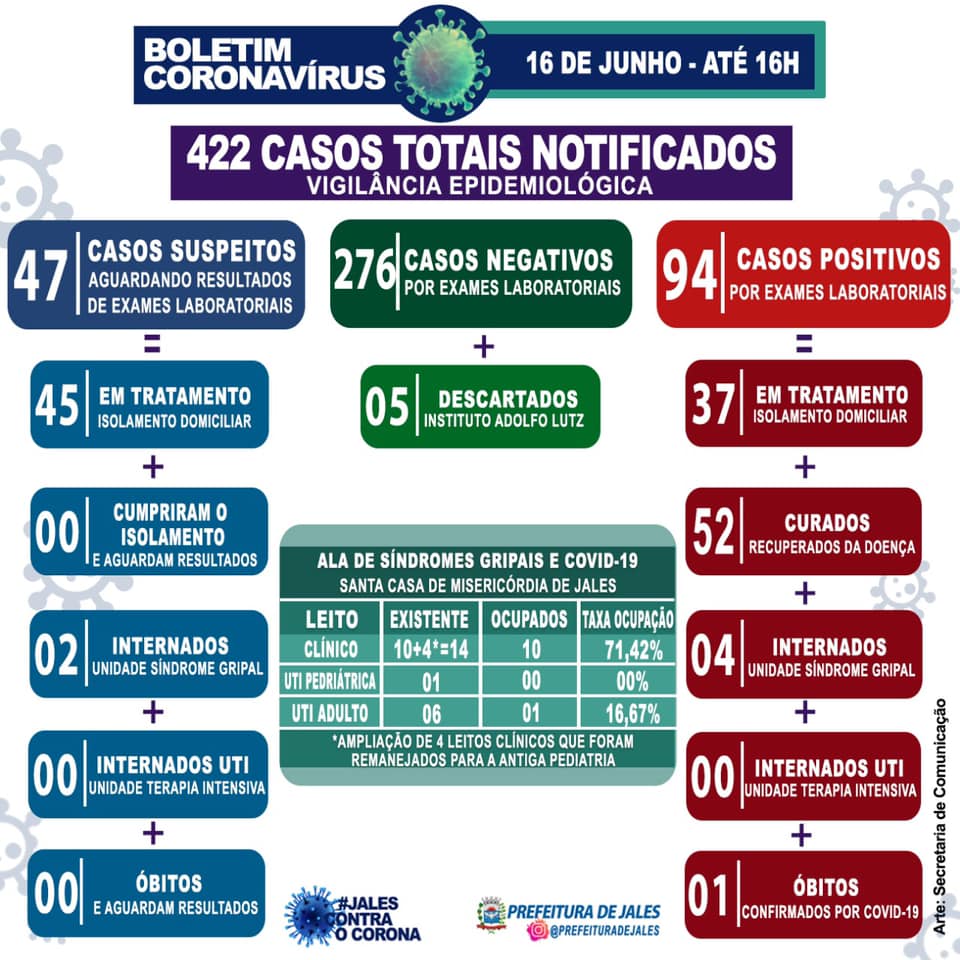 - Leito Clínico: 6 pacientes de Jales, 3 de Pontalinda e 1 de Santa Salete