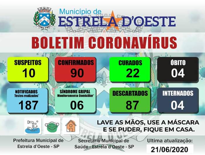 Estrela d´Oeste registrou neste domingo, 21, mais dois casos positivos de Covid-19.