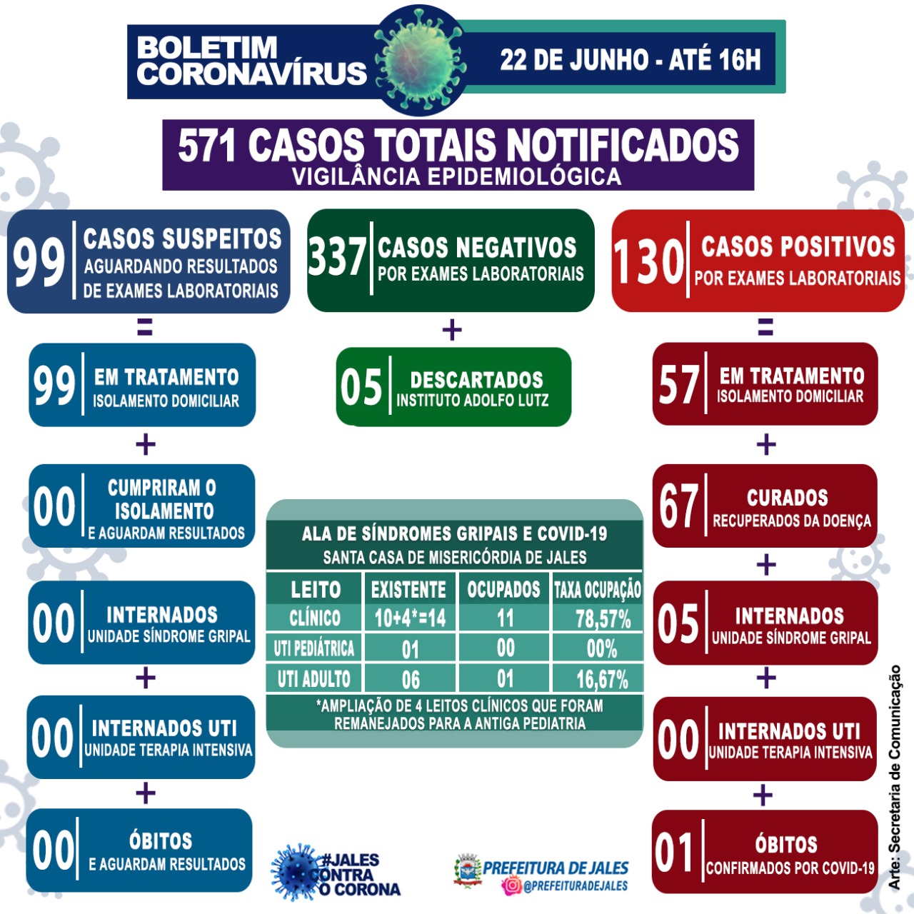 A Vigilância Epidemiológica de Jales informa que, nas últimas 24 horas, teve a notificação de mais 16 de casos suspeitos para Covid-19.