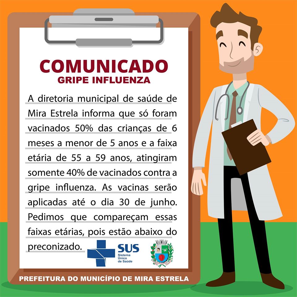 A Prefeitura de Mira Estrela, município situado a 37 quilômetros de Fernandópolis, por meio da Diretoria Municipal de Saúde, informou que somente foram vacinadas 50% das crianças de 6 meses a menor de 5 anos.