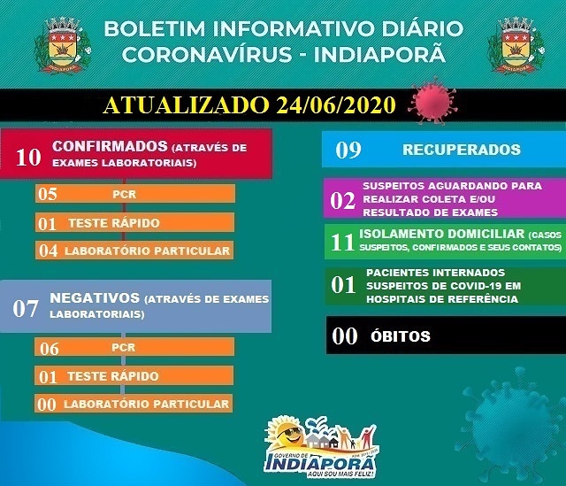 Indiaporã recebeu nesta quarta-feira, 24, mais um teste positivo de coronavírus. Agora são 10 os infectados pela doença no município desde o início da pandemia.