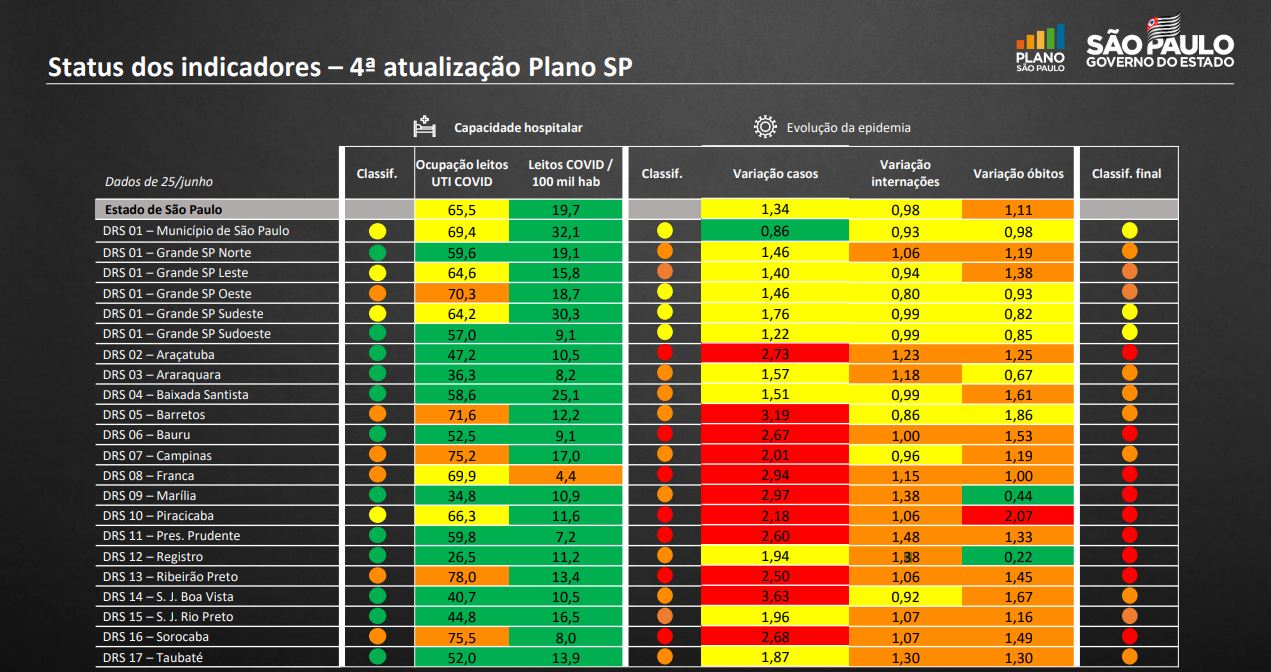 A quarentena heterogênea vai para o sexto período. "Nenhuma área de São Paulo está livre da doença. Volto a mencionar que o governo não toma atitudes por vontade política, por orientação ou pressão de quem quer que seja. Por isso, o Plano SP tem sido bem sucedido", disse o governador.
