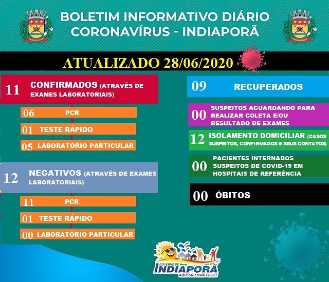Neste domingo, 28, a Secretaria de Saúde de Indiaporã recebeu mais um exame que testou positivo para coronavírus. Esse ´o 11º caso no município.