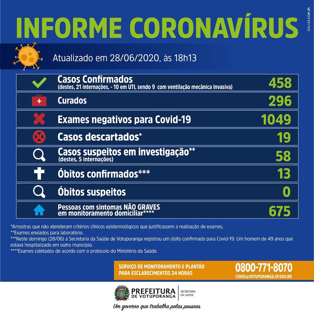 Ainda neste domingo (28/6), a Secretaria da Saúde registrou o 13° óbito por Coronavírus no Município. Trata-se de um homem, de 49 anos, que apresentava comorbidades. Ele estava hospitalizado em outra cidade e apresentou o início dos sintomas no dia 24 de junho.
