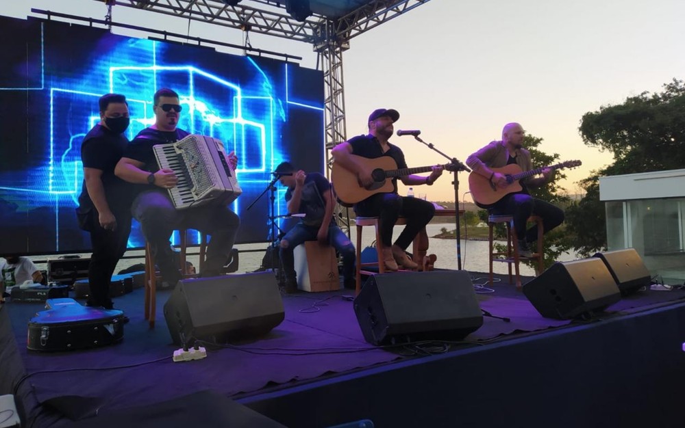 A Polícia Militar encerrou uma festa que teve show com o sertanejo Bruno, da dupla com Marrone, em Caldas Novas, no sul de Goiás. O evento aconteceu no sábado, às margens do Lago Corumbá e reuniu cerca de 40 pessoas. Um decreto municipal proíbe aglomerações na cidade.