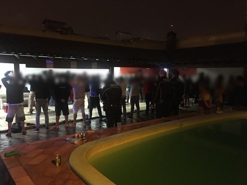 De acordo com a GCM, aproximadamente 50 pessoas participavam do evento, que foi descoberto depois de uma denúncia de perturbação de sossego. Entre os participantes estavam, ao menos, quatro menores de idade, sendo duas meninas e dois meninos.