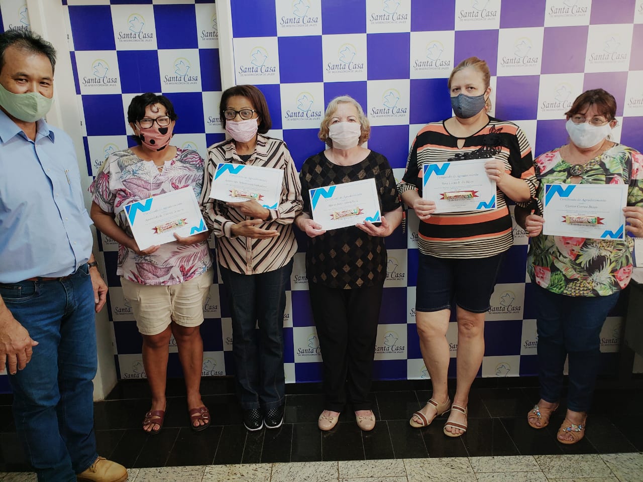 A Santa Casa de Jales homenageou, na terça-feira, 30 de junho, 05 colaboradoras, que dedicaram muitos anos de suas vidas de trabalho na instituição. Elas se aposentaram e receberam um “Certificado de Agradecimento” do provedor Toshiro Sakashita e do administrador Rafael Carnaz.