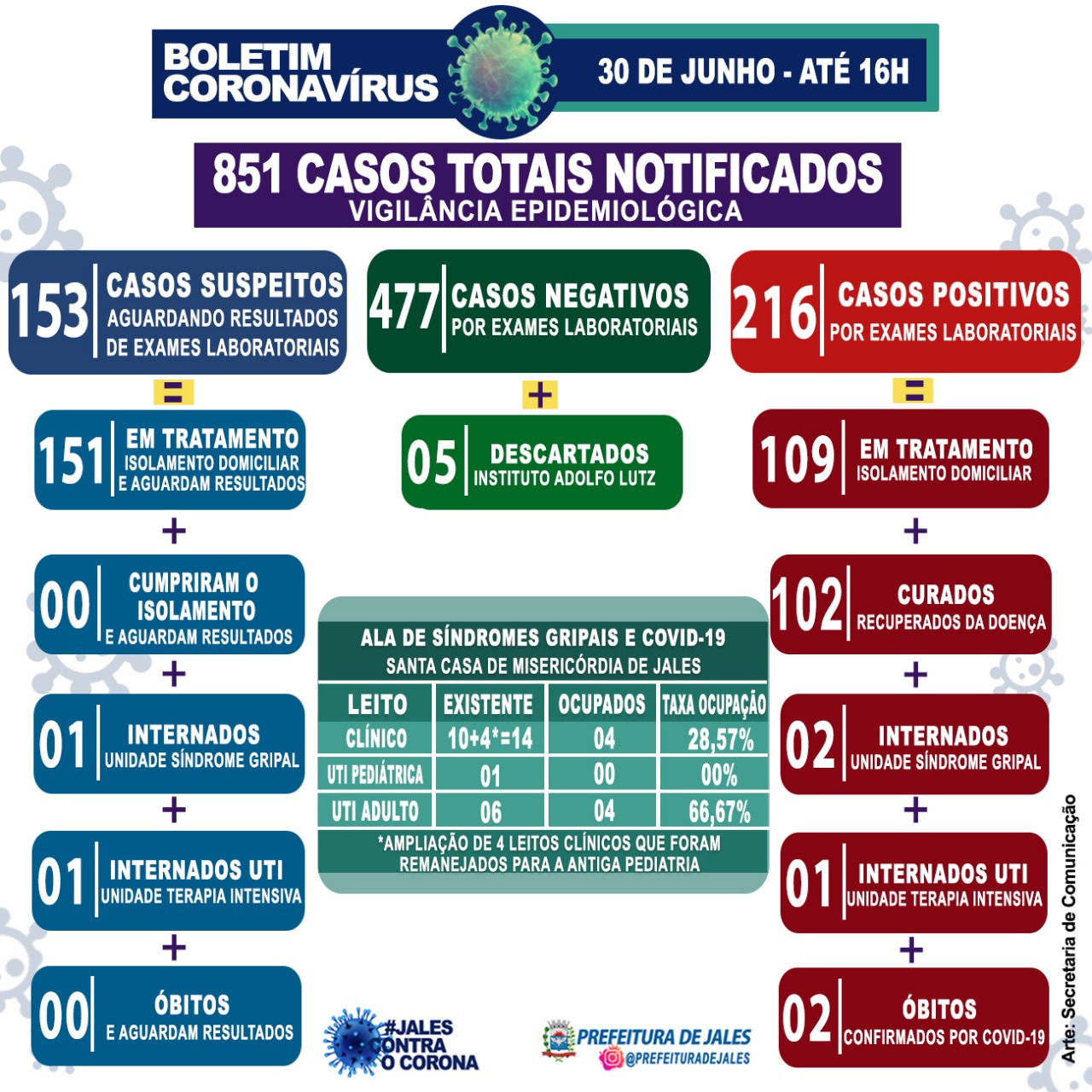 Na atualização desta terça-feira,30, a Vigilância Epidemiológica de Jales informou que o município recebeu e registrou 20 notificações de casos suspeitos para a Covid-19 nas últimas 24 horas.