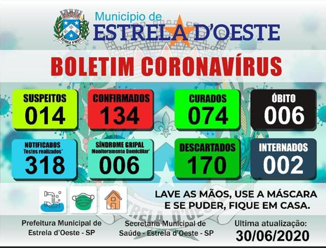 Em boletim epidemiológico divulgado ontem, 30, foi registrada mais um aumento no número de casos no município de Estrela d'Oeste.