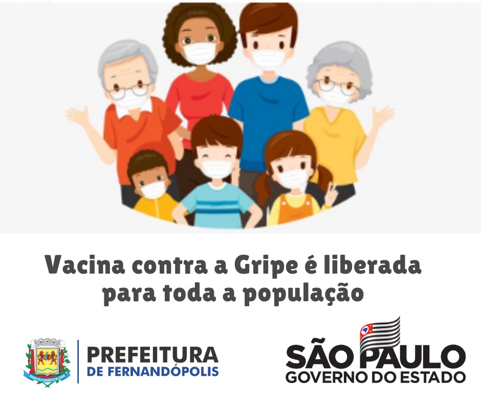 A Prefeitura de Fernandópolis liberou a vacina contra a gripe para pessoas de todas as faixas etárias. A medida foi definida pelo Ministério da Saúde e Governo do estado de São Paulo e visa à proteção da população contra o vírus Influenza, reduzindo o número de pacientes com sintomas respiratórios na rede de saúde.