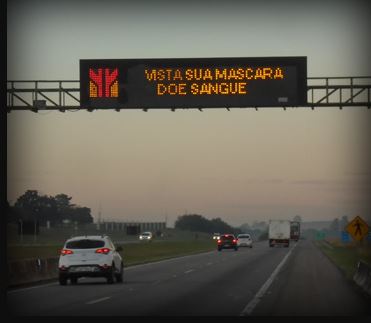 Mensagens nas rodovias paulistas alertam sobre a importância de usar máscaras