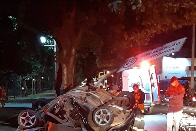 Carro capotou e bateu contra uma árvore na avenida Philadelpho, em Rio Preto - Colaboração/Leitor