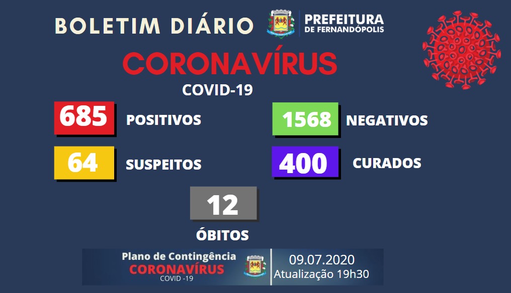 Fernandópolis registrou nesta quinta-feira, 9, mais 41 testes positivos de coronavírus. O município soma agora 685 infectados por Covid-19.