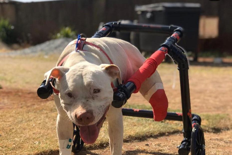 Depois de ter as duas patas traseiras arrancadas com golpes de foice na última segunda-feira, 7, em Confins, região metropolitana de BH, o pitbull de dois anos Sansão recebeu, na tarde desta quinta-feira, 9, a doação de uma cadeira de rodas que o permitirá se locomover. Além da cadeira, os tutores do animal afirmam que muitas pessoas de todo o país já os procuraram oferecendo doações.