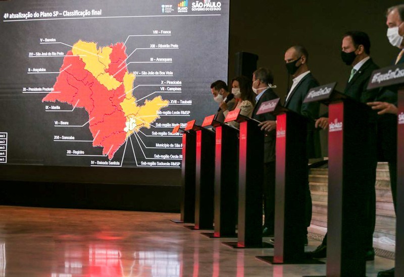 Agora são dez regiões e uma sub-região metropolitana na fase laranja. As áreas de Bauru, Marília, Piracicaba, Presidente Prudente e Sorocaba avançaram da fase vermelha, e permaneceram estáveis as de Araraquara, Barretos, São João da Boa Vista, São José do Rio Preto, Taubaté e a sub-região Norte (Franco da Rocha) da Grande São Paulo.