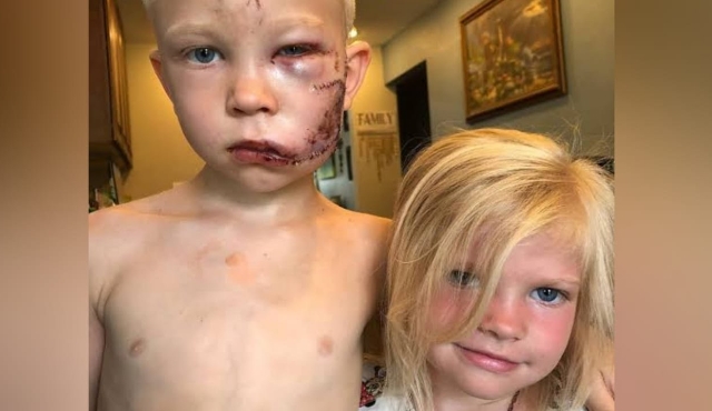Menino salva irmã caçula de ataque de cachorro e tem rosto desfigurado