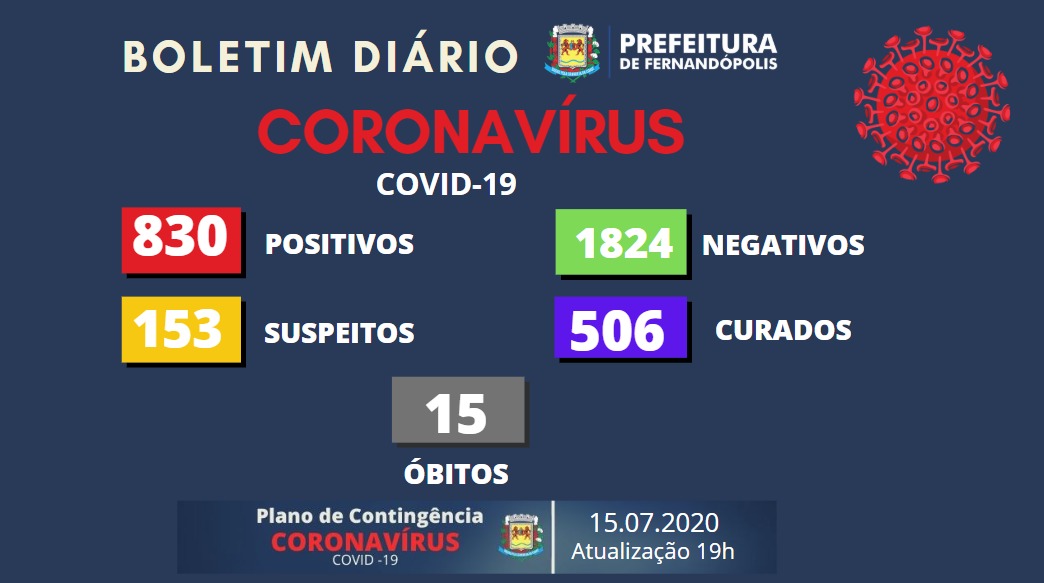 Fernandópolis registrou nesta quarta-feira, 15, mais 35 testes positivos de coronavírus. O município soma agora 830 infectados por Covid-19.