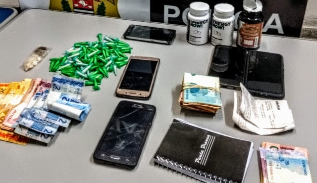 O flagrante foi um homem de 18 anos, que foi surpreendido com 120 pinos de cocaína, uma porção de maconha, três celulares e R$ 179 em dinheiro.