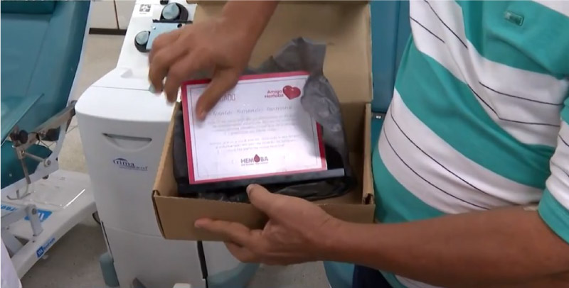 Durante 49 anos ele foi doador de sangue a acumulou mais de 700 registros na instituição! O reconhecimento da ajuda dada pelo aposentado veio a primeira vez através de um convite para ser garoto propaganda do Hemoba. Dessa vez, ele recebeu uma homenagem pela sua última contribuição para o banco de sangue do estado