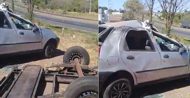 No começo da tarde desta quarta-feira, 22, um veículo foi atingido por uma 'carretinha' que escapou de um outro veículo que transitava na rodovia Euclides da Cunha, sentido Jales a Urânia.