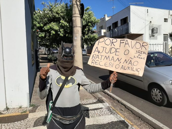Segundo o ambulante, a ideia de vestir de Batman foi justamente para chamar atenção para sua situação. Além do uniforme, ele carrega uma placa escrita “Por favor, ajude o Batman. Não recebi o auxílio”. “Eu já tinha essa fantasia e costumava usar ela antes da pandemia. Felizmente, os motoristas têm sido solidários e me ajudado com algumas moedas, o que me ajuda a comer, mas ainda não é o ideal para eu conseguir pagar minhas contas atrasadas”, contou.
