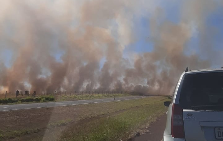 Fumaça de incêndio invadiu a pista da Rodovia Euclides da Cunha