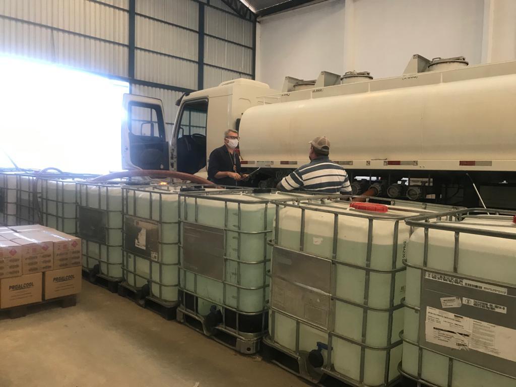 A fábrica clandestina batizava o álcool em gel que era distribuído para supermercados
