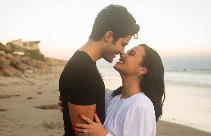 A atriz e cantora Demi Lovato, 27, usou as redes sociais nesta quinta-feira, 23, para anunciar que está noiva do ator Max Ehrich. Através de uma publicação, Lovato diz que está animada para começar uma vida e uma família ao lado do companheiro.