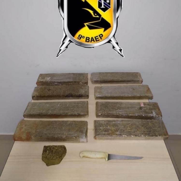 Homem tentou fugir, mas foi pego pelo Baep com 8 tijolos de maconha