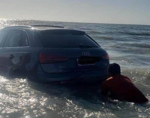 O Detran informou que "a situação começou quando o condutor do Audi não percebeu a forte maré no local e atolou. O proprietário da caminhonete Triton tentou ajudar, mas também acabou com o veículo atolado".