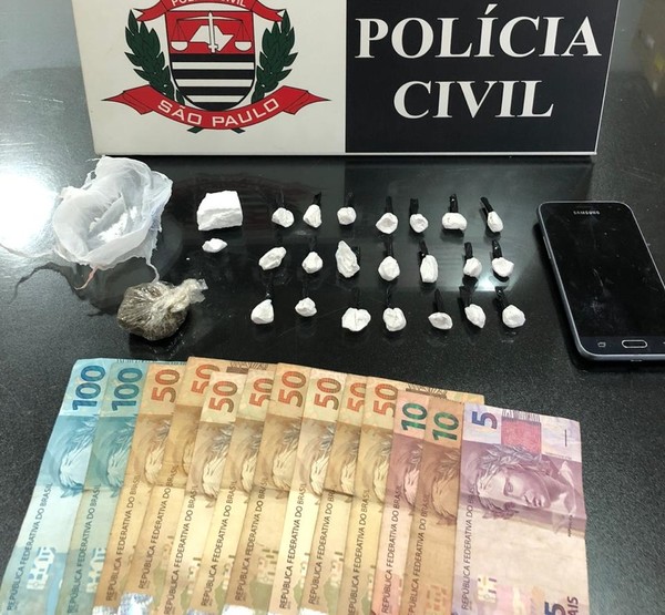 Drogas e dinheiro apreendidos na operação da polícia de Jales — Foto: Divulgação/Polícia Civil