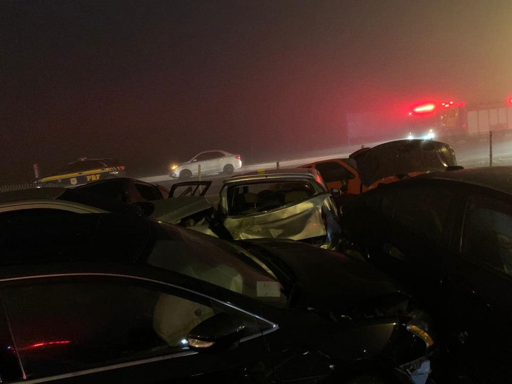 Com a visibilidade ruim, segundo a PRF (Polícia Rodoviária Federal), o motorista de uma carreta teria perdido o controle e atingido os demais carros e motos. Sete pessoas morreram no local do acidente, sendo quatro homens e três mulheres. A oitava vítima morreu no hospital.