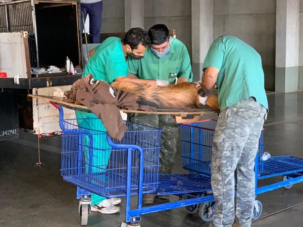 Animal é avaliado por funcinários do zoológico de Rio Preto — Foto: André Modesto/TV TEM