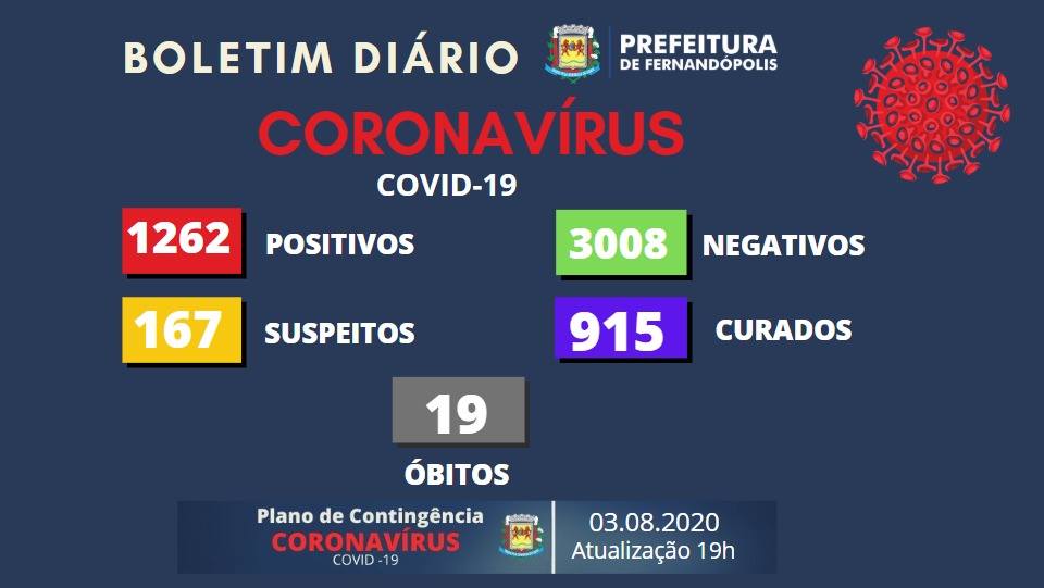 Fernandópolis registra 16 novos casos de coronavírus; 19ª morte é confirmada