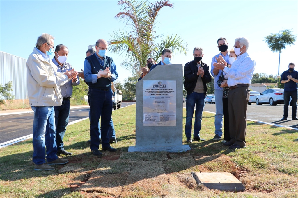 Prefeito, assessores e populares em recente entrega do prolongamento da Avenida Dr. Wilson de Souza Foz. Foto: P.M. de Votuporanga