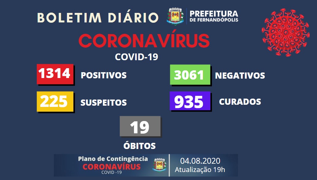 Fernandópolis registrou nesta terça-feira, 4, mais 52 testes positivos de coronavírus. O município soma agora 1.314 infectados por Covid-19.