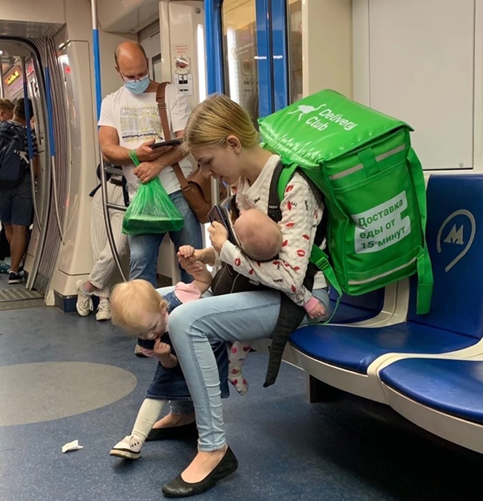 Uma foto de uma entregadora de delivery cuidando de duas crianças enquanto estava no metrô viralizou nas redes sociais e mostrou duas faces perversas do mundo em que vivemos: a precarização trabalhista e a dupla jornada de trabalho das mães solo. Lada Koroleva, a mulher registrada no metrô de Rostov do Don, na Rússia, tem apenas 19 anos e, em entrevista ao portal norte-americano Bored Panda, contou um pouco de sua história.