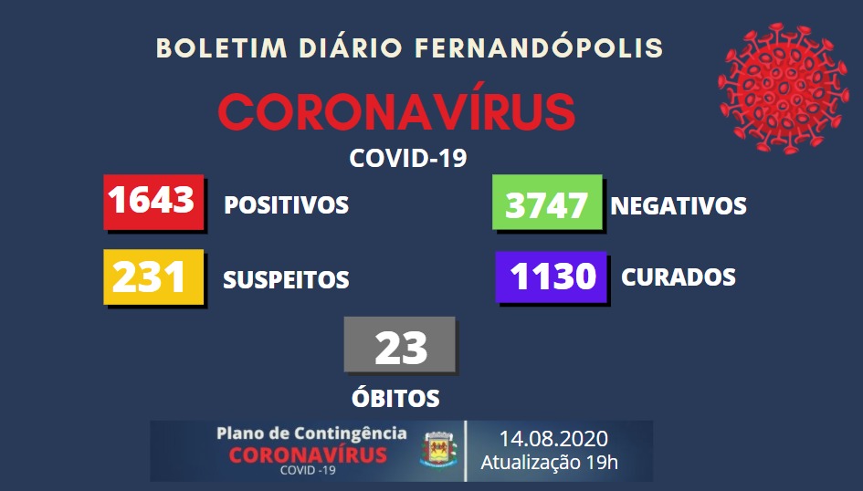 Fernandópolis registrou nesta sexta-feira, 14, mais 15 testes positivos de coronavírus. O município soma agora 1.643 infectados por Covid-19.