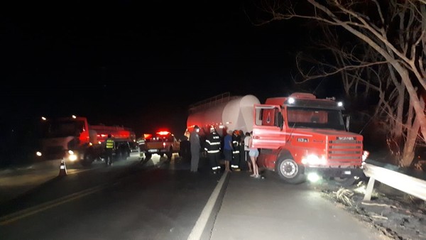 De acordo com o Corpo de Bombeiros, a fumaça de uma queimada registrada às margens da via pode ter atrapalhado a visão dos caminhoneiros e causado as colisões.
