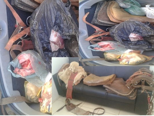 Nas casas dos investigados foram localizados dois jogos de arreios completos, 32 kg de carne suína, além de embalagens prontas para o preparo de entorpecentes. Todos os produtos foram apreendidos.
