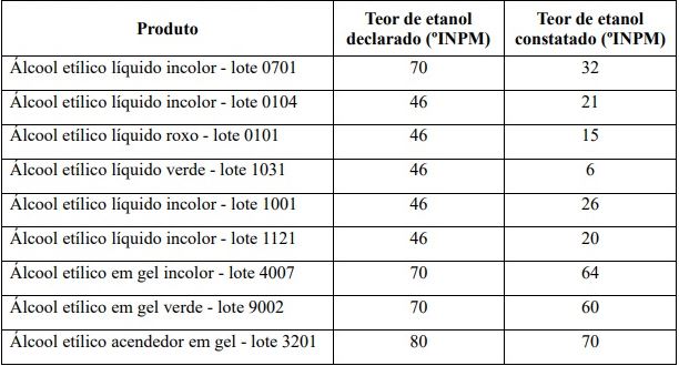 Em todos os frascos a concentração de etanol era menor do que o indicado no rótulo