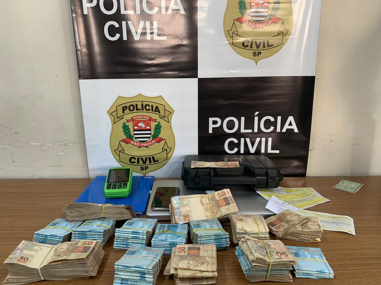 Policiais civis do GOE/Deic (Grupo de Ações Especiais da Divisão Especializada em Investigações Criminais) apreenderam R$ 124 mil em dinheiro, além de cheques e notas promissórias, em uma operação realizada na manhã desta sexta-feira, 28, devido à uma investigação de lavagem de dinheiro.