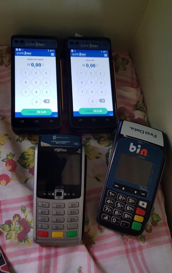 Máquinas de cartões apreendidas com o suspeito em Andradina — Foto: Divulgação/Polícia Civil