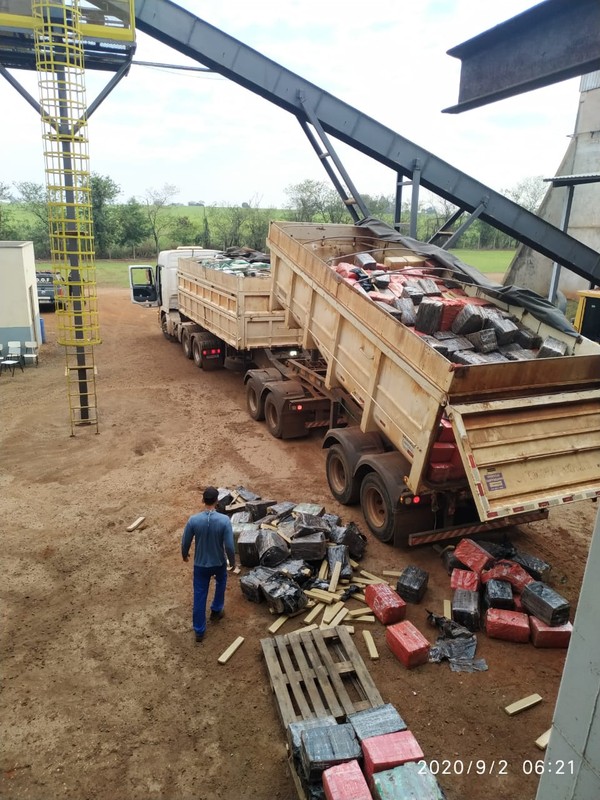 O entorpecente era transportado em uma carreta, cujo motorista fugiu ao ver policiais do Departamento de Operações da Fronteira (DOF). Um rapaz de 25 anos e um homem de 45 foram presos.