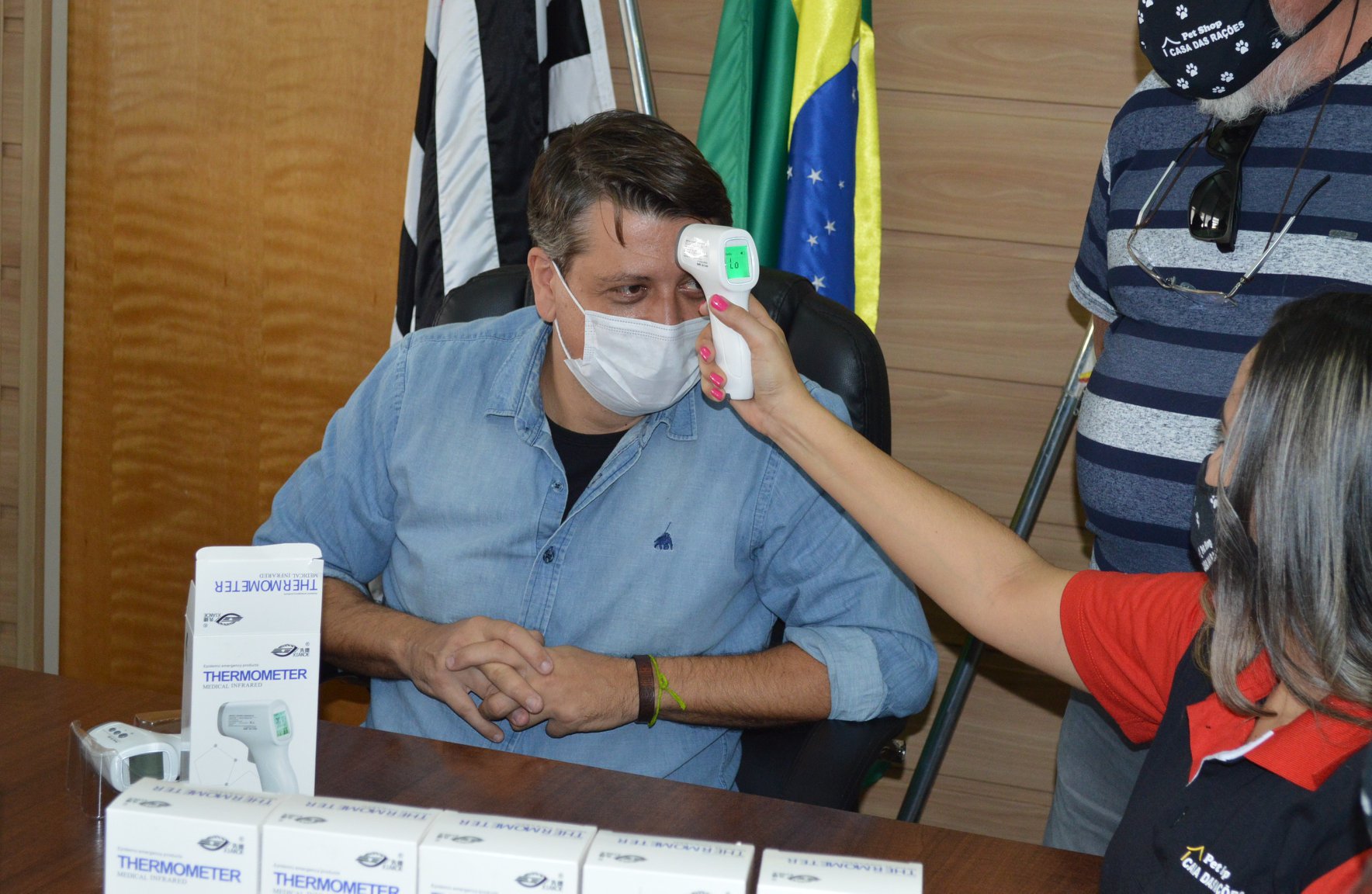 Pessuto durante exibição de instrumento térmico no Gabinete. Foto: Divulgação / Prefeitura Municipal de Fernandópolis