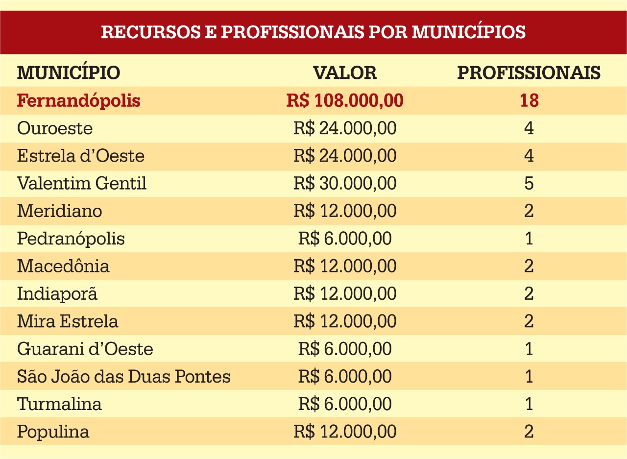 Fernandópolis receberá R$ 108 mil para a contratação de 18 profissionais