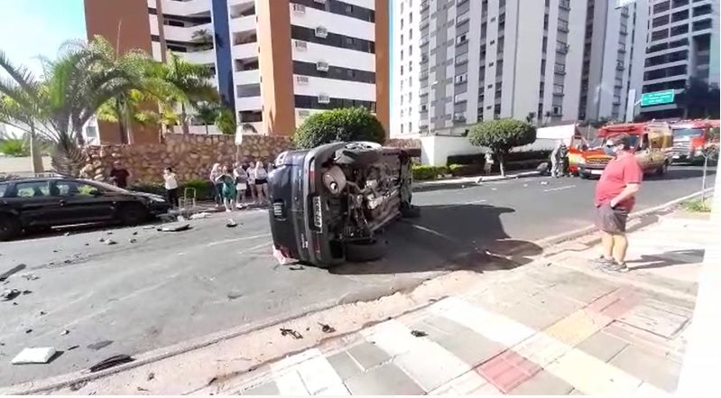 Um dos veículos chegou a tombar no meio na via pública. Foto: Karolina Granchi/SBT Interior